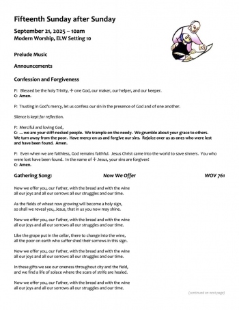 Click here for the worship sheet (with insert!) for September 21, 2025 - 10:00am